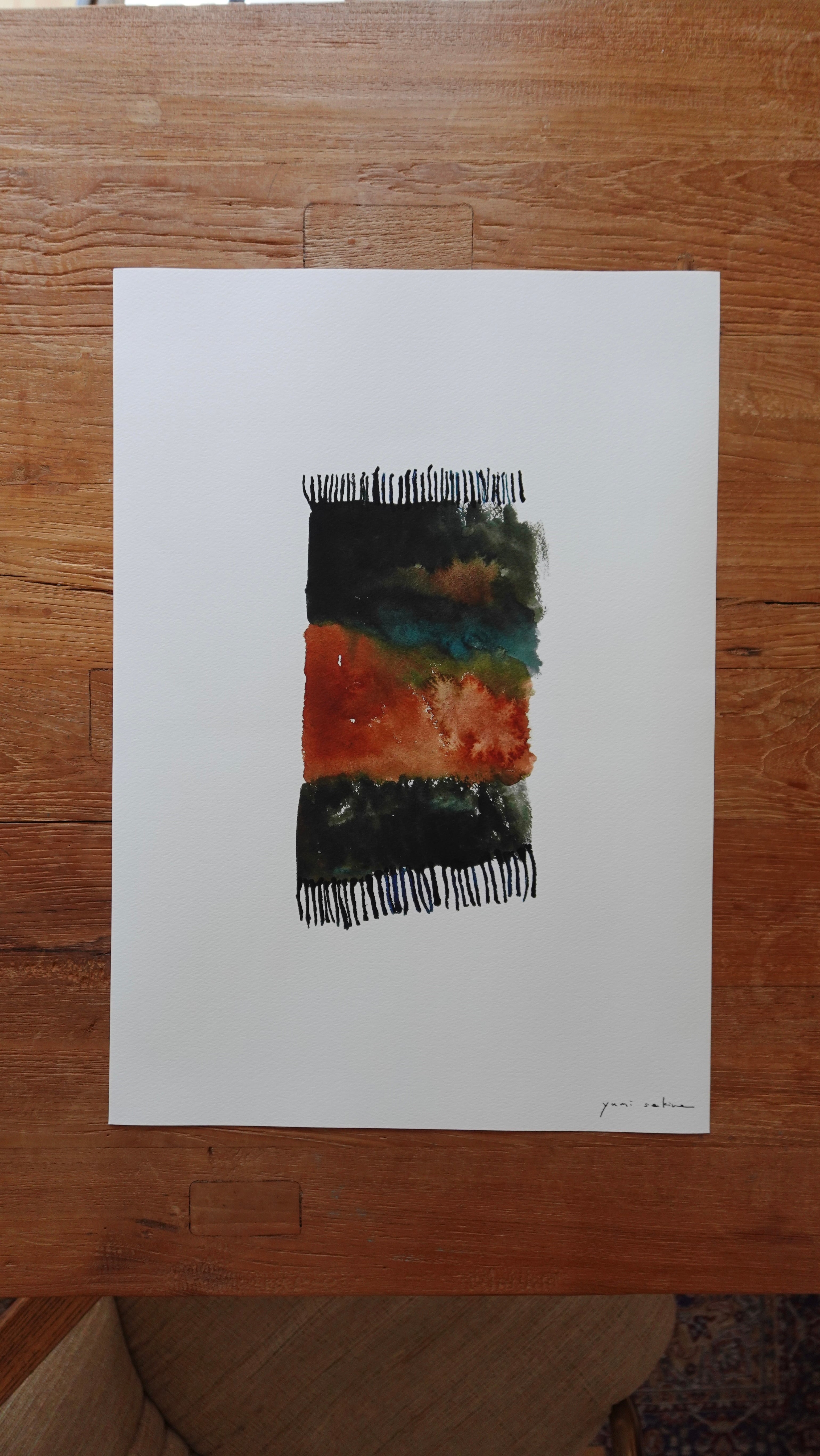 紙は厚く上質な画用紙のようでお部屋のどこに飾っても馴染む作品です。印刷インクの光の反射もありませんのでお好きな場所に気兼ねなく飾っていただけます。